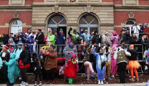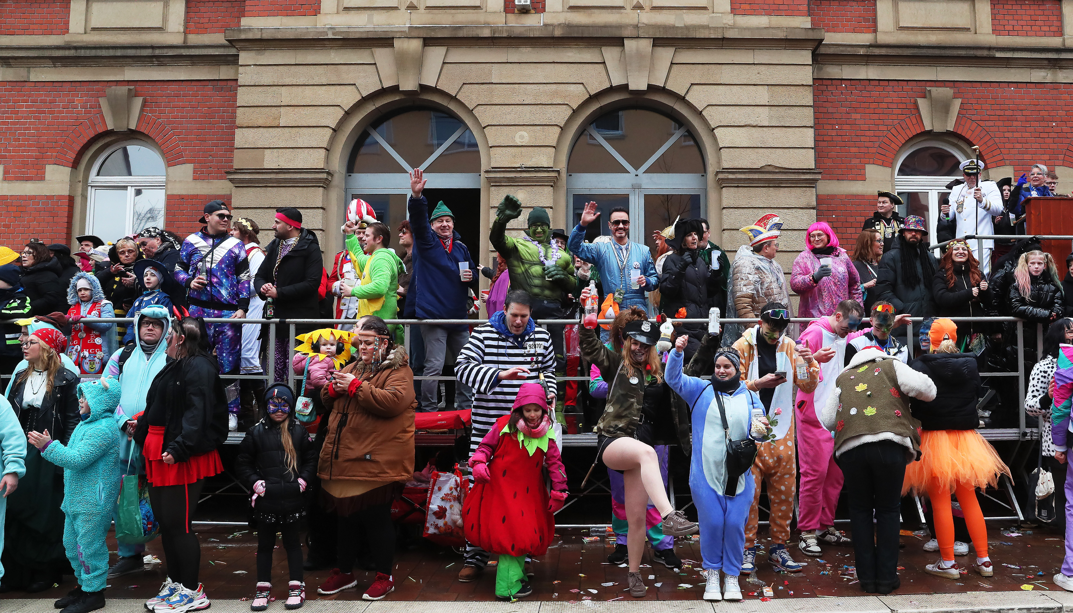 An der Ehrentribüne vor dem Hockenheimer Rathaus nahmen Carina Weber vom Carneval Club Blau Weiss Hockenheim 1989 e.V. und Oberbürgermeister Marcus Zeitler die Gruppen in Empfang. Auch nach dem Ende des eigentlichen Umzugs wurde auf dem Marktplatz mit Partymusik und ausgelassener Stimmung munter weitergefeiert.