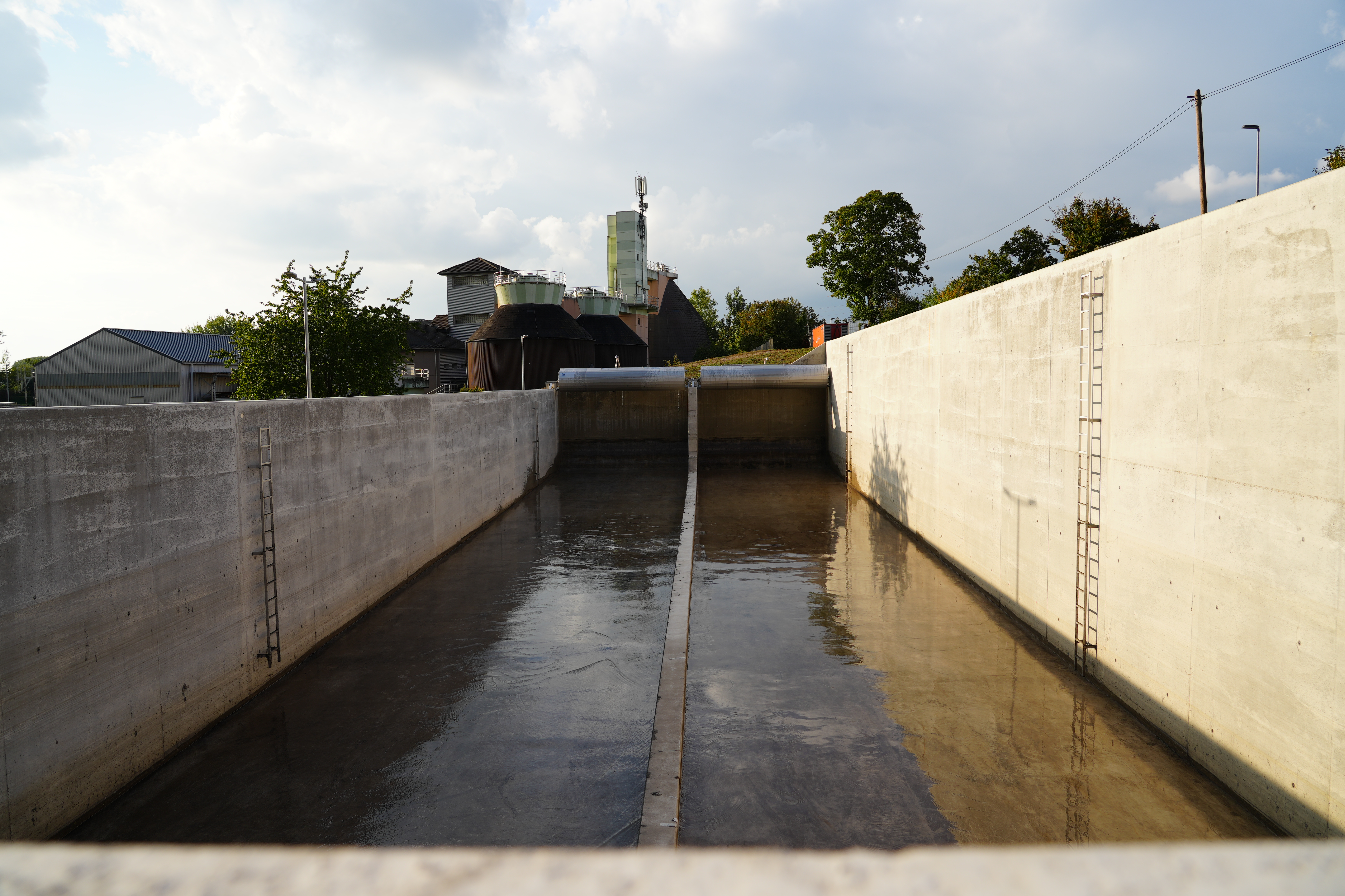 Als wichtiger Meilenstein für die Infrastruktur der Stadt konnte nach drei Jahren Bauzeit der Erweiterungsbau des Regenrückhaltebeckens, kurz RRB 4, im Hockenheimer Klärwerk in Betrieb genommen werden. Nach einer kurzen Begrüßung der anwesenden Gäste berichtete Oberbürgermeister Marcus Zeitler über die Herausforderungen des Bauprojekts, so führte etwa die aus Tierschutzgründen vorgeschriebene Umsiedlung einer Eidechse zu einer einjährigen Verzögerung. Zeitler nutzte die Gelegenheit, die Bedeutung des Klärwerks für die Lebensqualität in Hockenheim hervorzuheben. „Ohne ein so gut funktionierendes Klärwerk wäre vieles in Hockenheim nicht möglich“, so der Oberbürgermeister und nannte als Beispiel Großkonzerte wie das GLÜCKSGEFÜHLE-Festival. Denn: Auch alle Besucherinnen und Besucher nutzen die Sanitäranlagen. Dieser massive Anstieg an Abwasser muss dann vom Klärwerk verarbeitet werden. „Da müssen hier wirklich alle Teile perfekt ineinandergreifen…sonst haben wir hier ein Problem“, so Marcus Zeitler. „Unser Team des Klärwerks ist sozusagen unsere unsichtbare Feuerwehr, die sich im Hintergrund darum kümmert, dass alles läuft.“