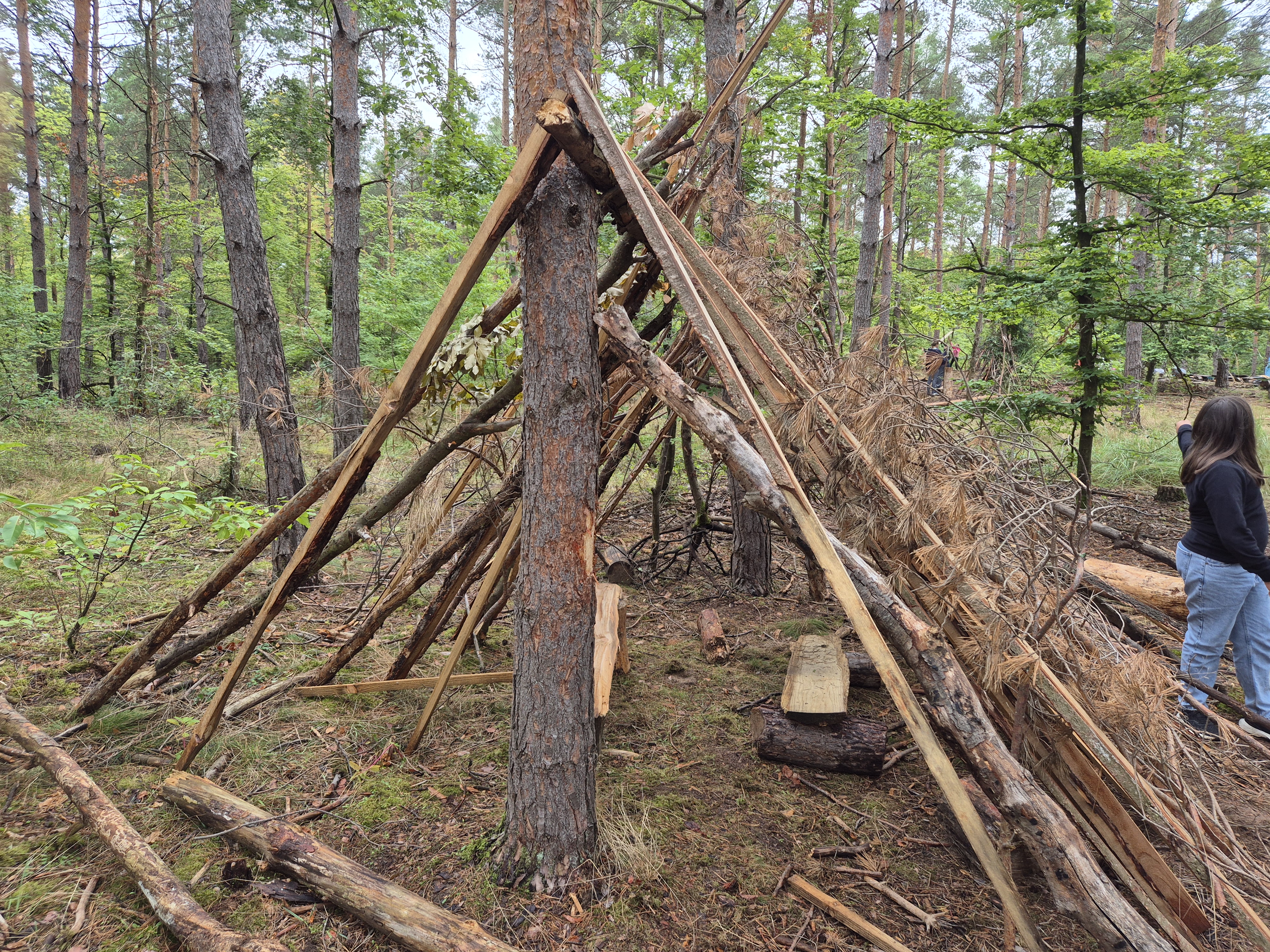 David Zahoor, der die Waldwochen leitet, versorgte zusammen mit dem Betreuerteam die teilnehmenden Kinder mit allerlei Wissenswertem rund um die Natur. Schon auf dem Weg zum Waldplatz erklärte der Naturpädagoge unter anderem verschiedene Bodenbeschaffenheiten, zeigte heimische und invasive Pflanzenarten und erläuterte beispielsweise, dass ein Pilz, der auf einem Misthaufen wächst, ziemlich ungenießbar ist, da Pilze immer den Geschmack von dem Nährstoff annehmen, auf dem sie wachsen. Die Kinder erzählten selbst auch begeistert von unterschiedlichen Erlebnissen im Wald, von ihren Ferien und stellten wissbegierig viele Fragen. Am Waldplatz lagen dank der Unterstützung durch den örtlichen Förster viele Stöcke und Äste bereit, die die Kinder nutzten, um daraus Tipis, Beobachtungsposten oder eine Festung zu bauen. Gemeinsam mit den Betreuern ist auch ein Waldsofa entstanden, das die Gruppe als zentralen Sammelplatz für Besprechungen und für Essenspausen nutzen konnte. Ganz im Räuber-Stil durften die Ferienkids sich ans Spurenlesen machen, verschieden Pflanzenarten erkennen und gebastelte Tiere auf dem Waldpfad suchen.