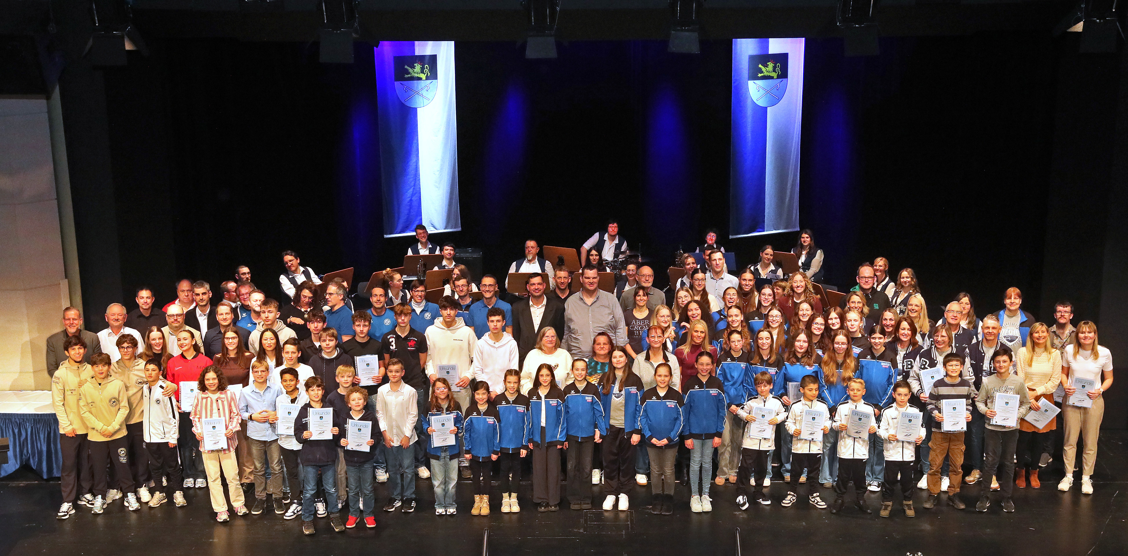 Insgesamt wurden 43 Sportlerinnen und Sportler mit der Ehrennadel in Bronze, zwei Athleten mit der Ehrennadel in Silber sowie 25 Sportlerinnen und Sportler mit der Ehrennadel in Gold ausgezeichnet. Darüber hinaus wurden elf Mannschaften für ihre großartigen Leistungen geehrt. Nicht nur der Oberbürgermeister ehrte die Sportlerinnen und Sportler, auch zahlreiche Unterstützerinnen und Unterstützer der Geehrten füllten die Hockenheimer Stadthalle und belohnten die Athletinnen und Athleten mit tosendem Applaus.
