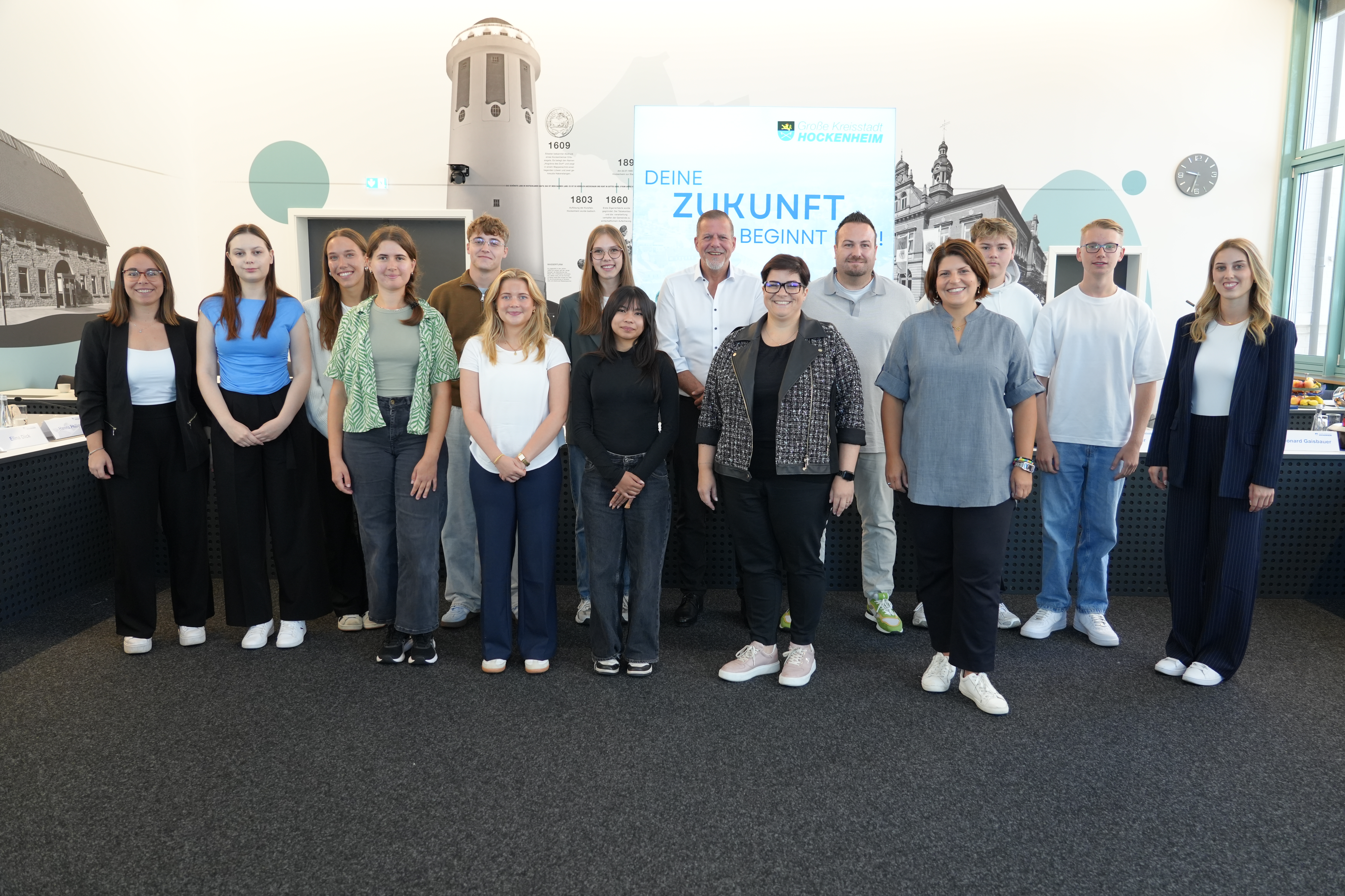 Die Stadt Hockenheim heißt zwölf neue Auszubildende herzlich willkommen in ihrer großen Verwaltungsfamilie. Bei der offiziellen Begrüßung im Bürgersaal des Rathauses betonte Oberbürgermeister Marcus Zeitler die Bedeutung von Gemeinschaft und Zusammenarbeit: „Kameradschaft bedeutet, gemeinsam an einem Strang zu ziehen.“ Er unterstrich die Wichtigkeit jedes Einzelnen mit einem anschaulichen Vergleich: „Wir sind wie ein Getriebe, bei dem jede kleine Zahnradbewegung den reibungslosen Ablauf sichert. Nur gemeinsam können wir erfolgreich sein, denn jede und jeder ist unverzichtbar für das Ganze.“