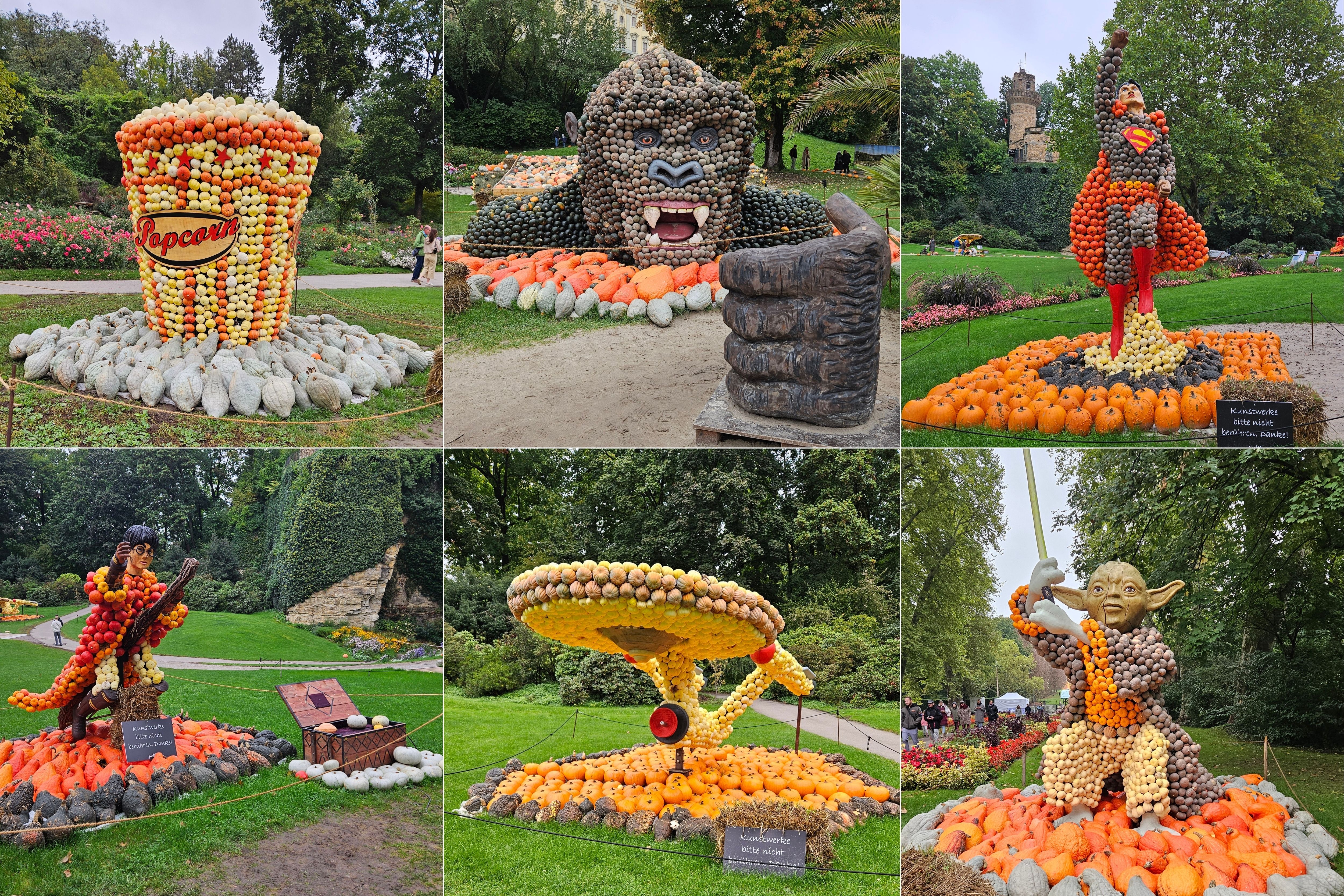 Nach einer Begrüßung durch Oberbürgermeister Marcus Zeitler fanden sich die Pensionärinnen und Pensionäre im Reisebus ein und nutzten die Fahrt zum gemeinsamen Austausch. Am Ziel angekommen gab es erst einmal Kaffee und Kuchen zur Stärkung, bevor die wunderschönen Kürbisskulpturen sowie die erstaunliche Kulisse des Blühenden Barocks Ludwigsburg bestaunt werden durften. Das diesjährige Motto der Ausstellung lautete: Großes Kino. Bekannte Filmfiguren wie Harry Potter, Yoda und Superman wurden aus Kürbissen nachgebildet. Auch allgemeine Figuren, welche mit dem Thema Kino verbunden werden, wie z.B. ein Popcorn-Eimer, wurden dargestellt.