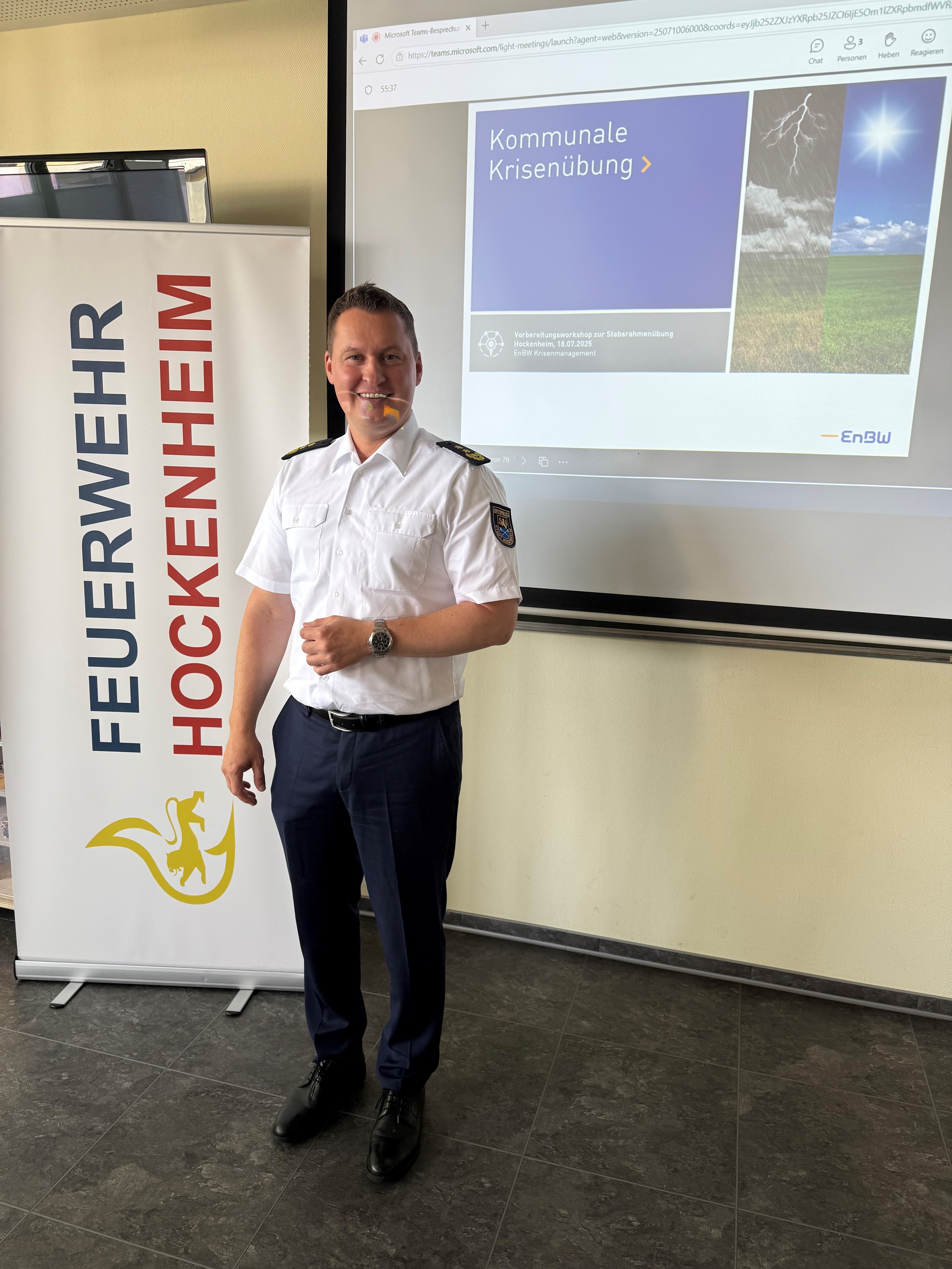 Die Krisenübung war die logische Fortführung und Weiterentwicklung des bereits erarbeiteten Krisenmanagement-Konzepts und Handbuchs, welches die Stadt Hockenheim gemeinsam mit der EnBW bereits erstellt und anlässlich der Übung nochmals überarbeitet und angepasst hatte.