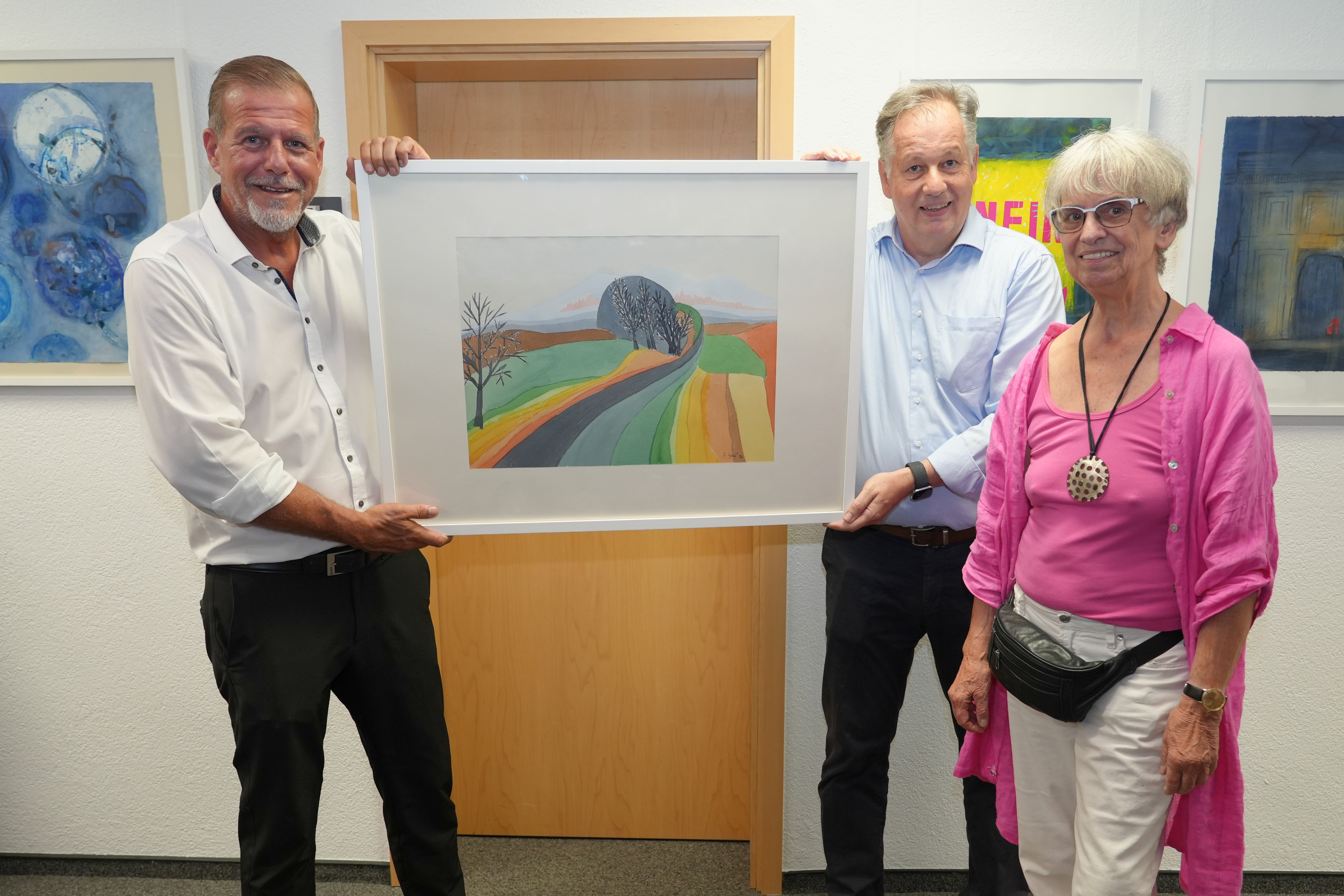 Gisela Späths Kunst schöpft ihre Inspiration aus der Natur – besonders aus dem Wald – und aus Themen wie Frau sein und Gesellschaft. Seit 1973 lebt sie in Hockenheim, wo die Kunst ihr geholfen hat, die Region kennenzulernen. Einige ihrer Werke sind von den Spargelfeldern und dem Altrhein inspiriert. Die Künstlerin lud die Besucher herzlich ein: „Jeder sieht die Werke mit seinen eigenen Erlebnissen und Gedanken. Kommen Sie und erleben Sie es selbst.“ Als Dankeschön überreichte sie der Stadt eines ihrer Gemälde.